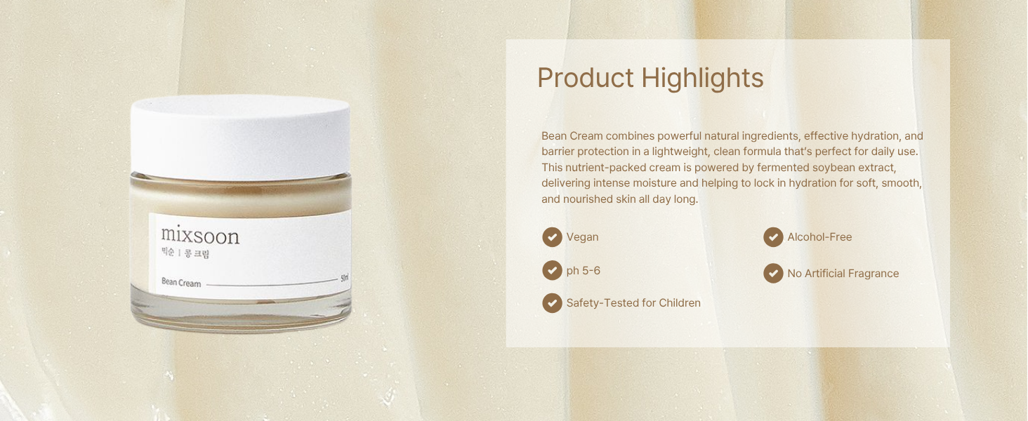 A rich yet lightweight cream that delivers intense hydration while strengthening the skin barrier. Formulated with a skin-friendly pH of 5~6, it helps maintain a healthy balance while supporting barrier function. Powered by fermented soybean extract, it locks in moisture for soft, smooth, and nourished skin all day. Enriched with barley, pomegranate, and pear extracts, it deeply nourishes, improves skin texture, and promotes a radiant, youthful-looking complexion. The non-greasy formula absorbs quickly, soothes irritation, prevents moisture loss, and leaves skin feeling balanced, silky, and revitalized. Suitable for daily use on all skin types.